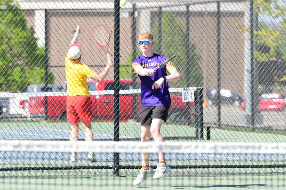 Karson Schulz waited for the serve from his Kuemper opponent.