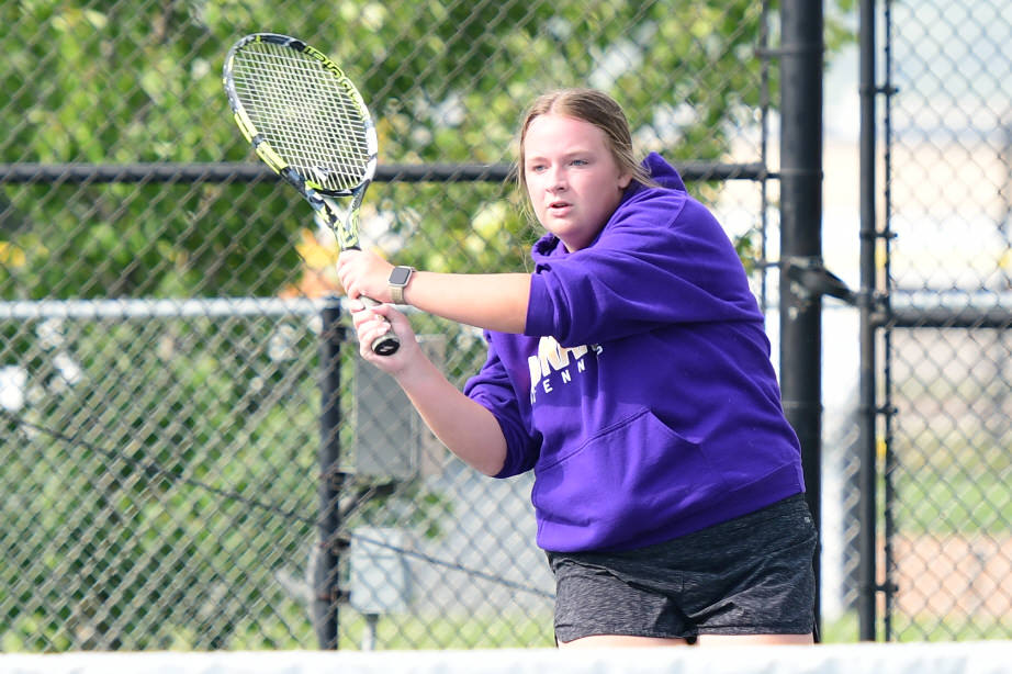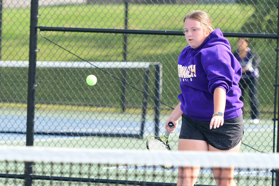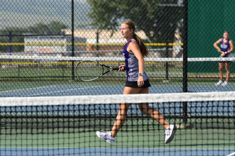 Kacie Schulte fired off a serve to her Sioux City East opponent.
